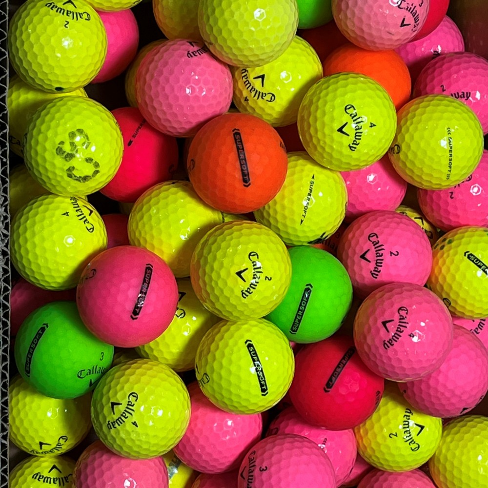 Backspin Callaway Supersoft Farget A/B er brukte, fargede mykballer i pen kvalitet. Du får lettspilte baller med god synlighet og myk følelse til lavere pris.